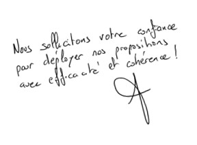 Soutenu par des femmes et des hommes dévoués et qualifiés, je vous propose de relever ensemble les défis d’un village comme le nôtre en bâtissant l’avenir avec confiance et en ne laissant personne de côté.