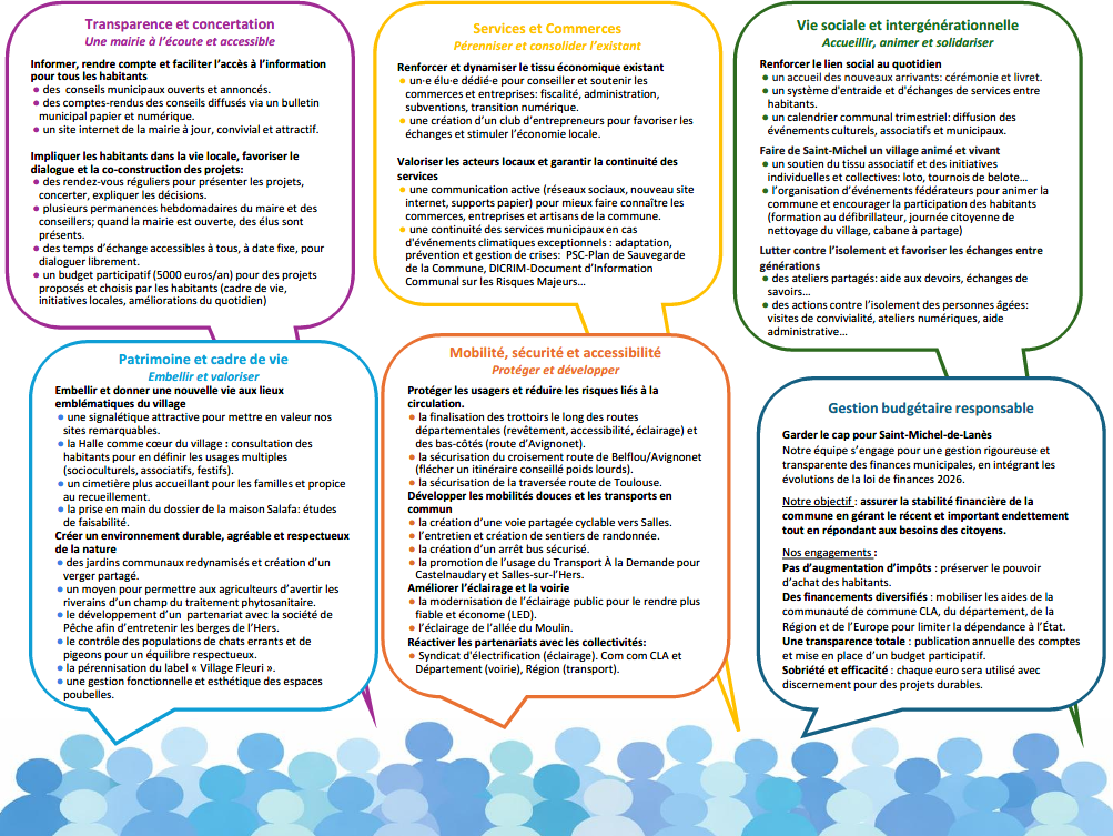 Le 15 mars, votez pour une équipe qui propose des actions simples et utiles pour améliorer le quotidien, sans dépenser inutilement. Notre force ? Vous écouter et agir avec vous. Pas de promesses, mais des solutions concrètes, nées de vos idées et de notre attachement à Saint-Michel.